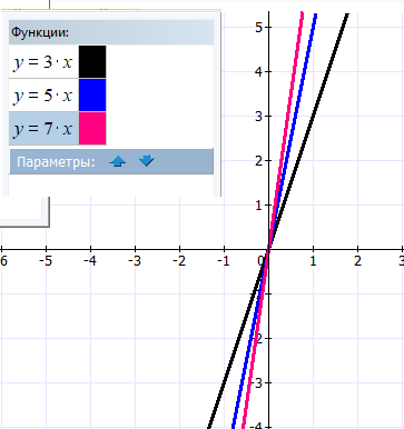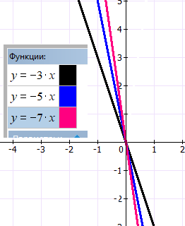 Для начала определим уравнение первой(оранжевой) прямой. Она проходит через точки (-2; 4) и (-1; -1).Коэффициент k= у/х=-5/1=-5