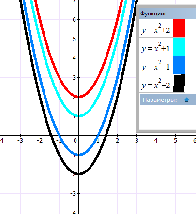 Из графика видно, что был выполнен параллельный перенос на один единичный отрезок вверх по оси ординат. Коэффициент а=1 .