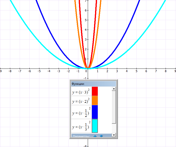 Вывод: Умножение аргумента на число k приводит к растяжению графика по оси OХ(0 .