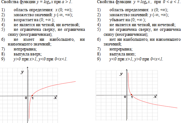 Теперь с помощью графика сформулируем свойства функции y=logax при а 1.