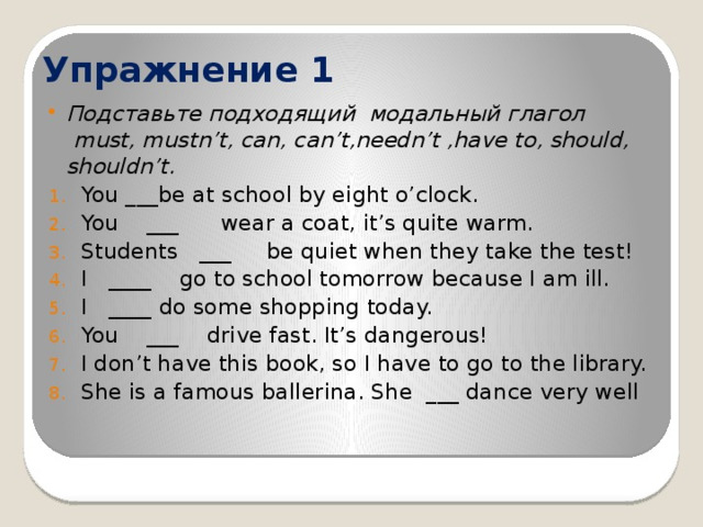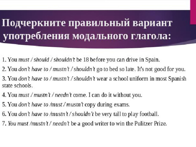 Эта разработка направлена на повторение выученных модальных глаголов. на ознакомление с новыми модальными глаголами. Она также содержит информацию об употреблении каждого модального глагола и также задание на закрепление