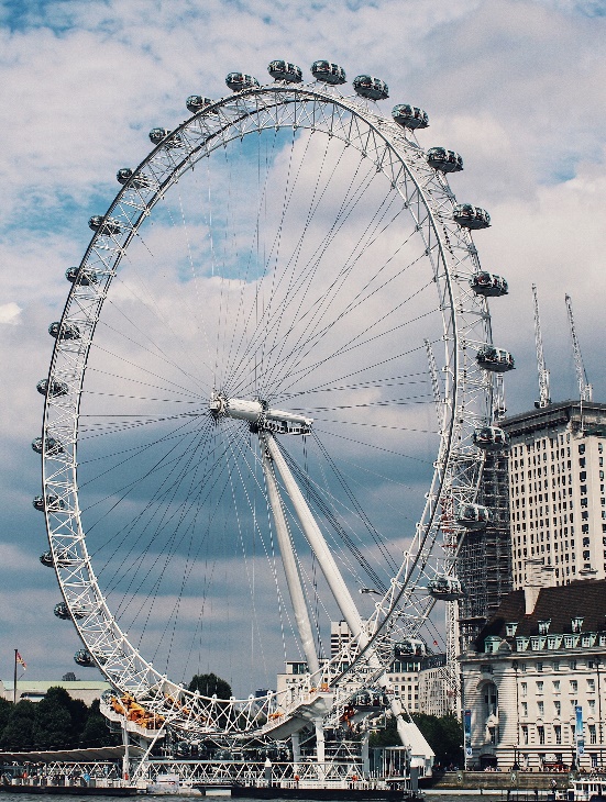Лондонский глаз – главное колесо обозрения в Лондоне высотой в 135 метров, первое время бывшее еще и самым высоким в мире, а на сегодня это одна из популярнейших достопримечательностей, позволяющая охватить взглядом весь город. Колесо обозрения Лондонский глаз относится к группе новых достопримечательностей, но, несмотря на небольшой возраст, оно стабильно входит в топ самых посещаемых туристами мест Лондона. Каждый год аттракцион посещают около 3 миллионов человек. Лондонский глаз имеет 32 полностью закрытые и кондиционируемые кабинки-капсулы для пассажиров, сделанные в форме яйца. Колесо было построено из отдельных сегментов, которые переправляли вверх по Темзе. Когда сборка колеса была закончена, его подняли с помощью специальной системы до угла 65 градусов за один час. Общий вес стали в «Глазе» составляет 1700 тонн.