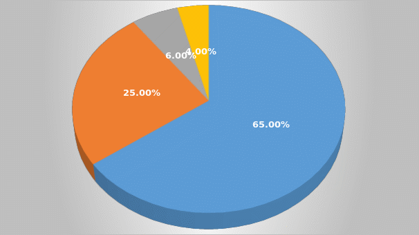Больше половины опрошенных (65%)сказали, что почти всегда употребляют английские заимствованные слова. 25% редко используют англицизмы, 6% их не используют, а 4% затруднились с ответом.