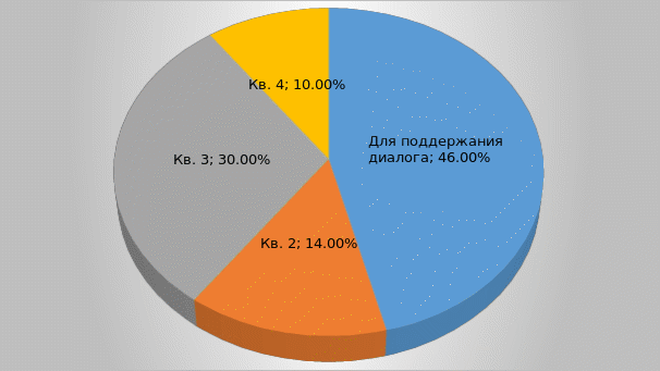 Согласно опросу, самыми значимыми причинами употребления англицизмов, учащимися является облегчение и поддержка диалога (50% опрошенных). 14% подростков используют заимствования для улучшения знаний английского языка. 13% школьников считают, что это модно и круто. 6% учеников затруднились с ответом.
