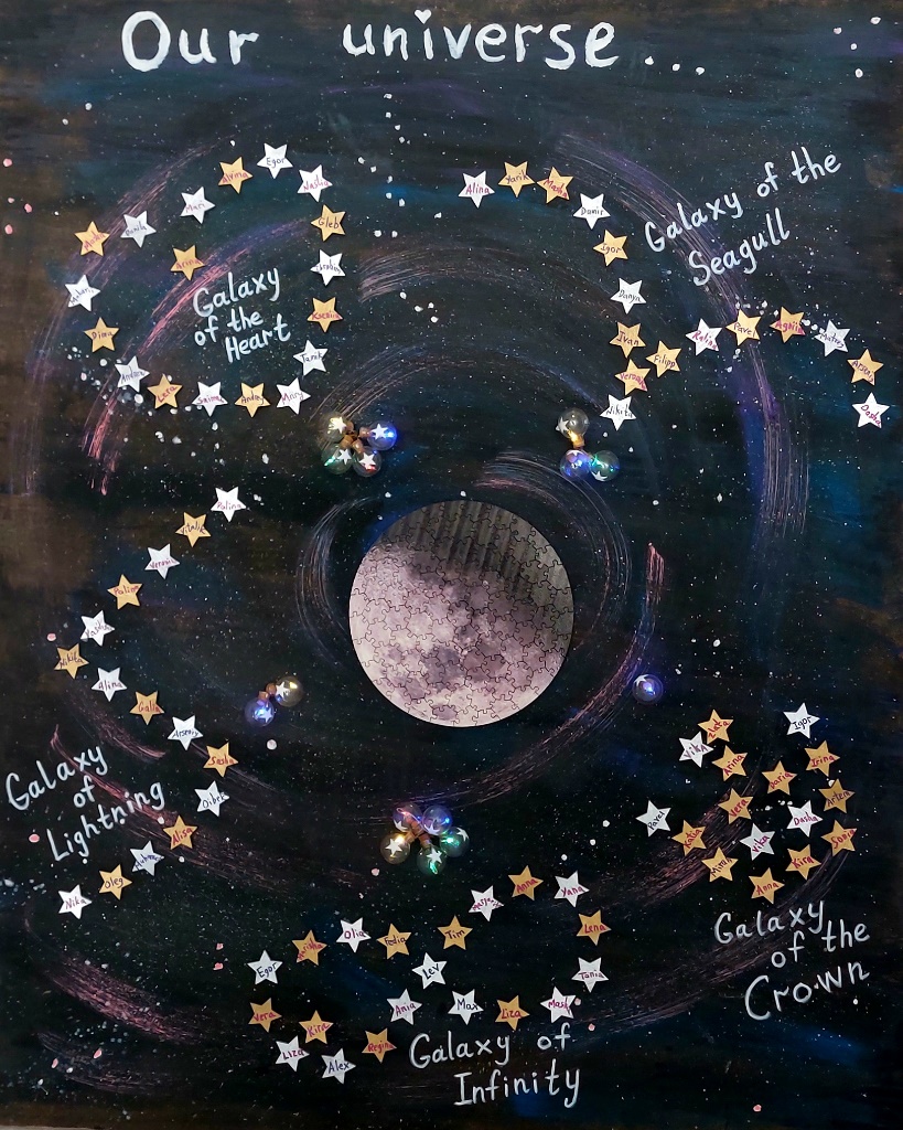 Среди учащихся 5ых классов с начала этого учебного года в целях повышения мотивации было решено добавить соревновательный момент. Мы сделали карту звездного неба, где каждый класс представлен в виде созвездия(каждый ученик – звездочка). Каждое созвездие борется за возможность сиять ярче других. «Shine bright like a diamond!» Ежемесячно подсчитывается средний балл успеваемости всего класса по предмету. От этого зависит, сколько огней загорится у созвездия. Ученики стали более ответственно подходить к выполнению домашних заданий, стараются не подводить свой класс.