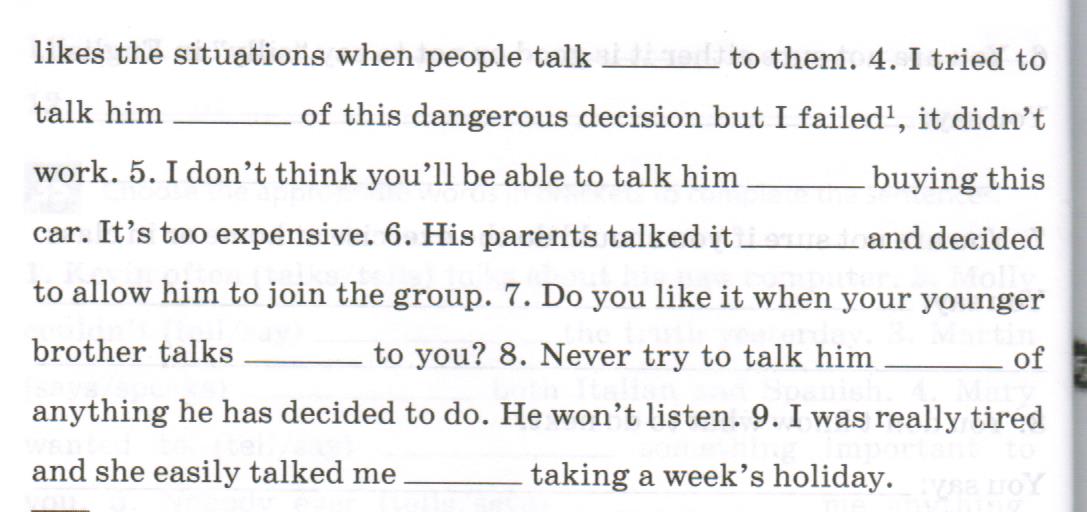 1. Jason talked his friend ____ taking part in the race. It was very impоrtant for their school.