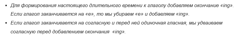 Составить алгоритм образования настоящего продолженного времени, анализируя предложения в настоящем продолженном времени.