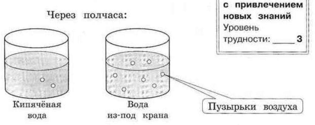 Задание: «В два стакана налили воду: в один – кипячѐную, в другой – воду из-под крана. Рассмотри результаты опыта, показанные на схематическом рисунке. Запиши вывод из опыта и ответ на вопрос».
