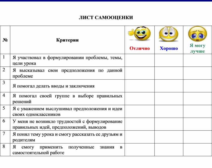 Но попрошу оценить свою работу на уроке и выставить отметки (галочки) в оценочные листки. Приложение 2.