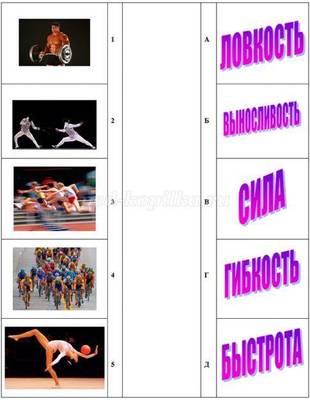 1.Выберите правильный ответ. 1. Спортсмен, который ходит сидя. а) Шахматист; б) ходок; в) лыжник. 2. Спортивный переходящий приз. а) Грамота; б) кубок; в) медаль. 3. В каком виде спорта самый высокий старт? а) Парашютном; б) плаванье; в) прыжки с трамплина. 4. В каком виде спорта спортсмены наносят друг другу уколы? а) Фехтование; б) бокс; в) хоккей. 5. Без чего судья не может выйти на поле? а) Перчатки; б) флажок; в) свисток. 6. Обувь футболиста. а) Кеды; б) бутсы; в) коньки. 7. Что стремится установить спортсмен? а) Планку; б) рекорд; в) время. 8. Как называется шест с лопастью для гребли? а) Палка; б) бита; в) весло. 9. Спортивная игра, цель которой - забросить мяч в корзину? а) Баскетбол; б) волейбол; в) футбол. 10. Боксерский корт. а) Стадион; б) ринг; в) поле.