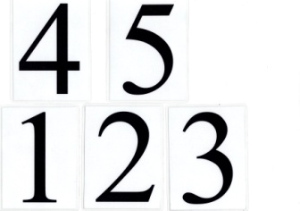 - Молодцы. Ребята, посмотрите, кто-то перепутал все цифры (на доске хаотично вывешены карточки с цифрами от 1 до 5). Давайте с вами наведем порядок и расставим все цифры на места. Какая у нас цифра должна быть самая первая? (один)