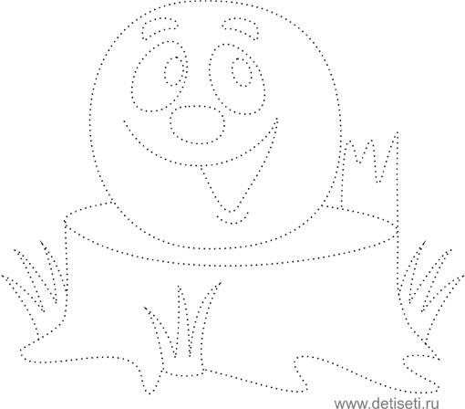 - Ребята, куда же подевался колобок? Вы не видели? Он, наверно, в прятки с вами решил поиграть! Колобок, где же ты? (педагог имитирует поиски колобка). Смотрите, что я нашла. (работа в зеленой тетр) Здесь что-то нарисовано. Давайте обведем и узнаем, что же здесь.