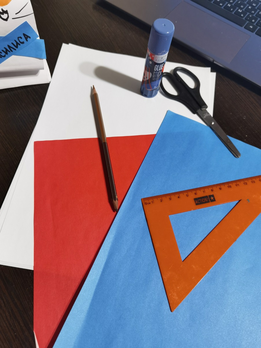 О борудование и материалы: прямоугольные листы белой и цветной бумаги, простой карандаш, линейка, клей, ножницы, салфетки, клеенки, цветные карандаши (можно фломастеры).