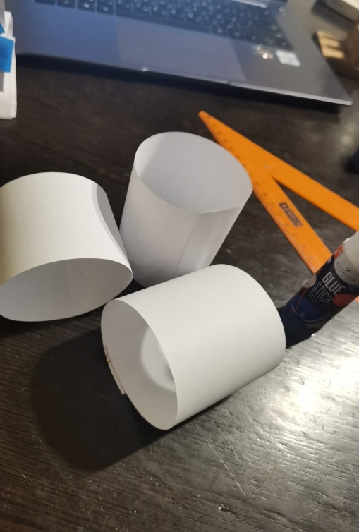 2 . Превращаем полоски бумаги в цилиндры с помощью клея.