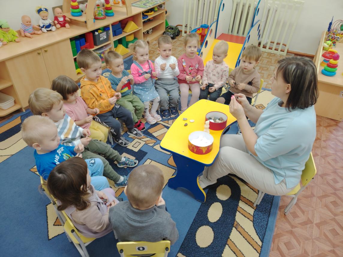 Воспитатель: Спасибо, Зайчик, очень красивая коробочка. А что же в ней, давайте посмотрим. Что же это?
