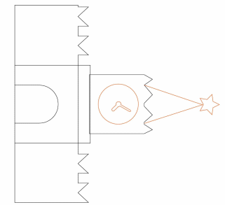 2. Над ней приклеим прямоугольник красного цвета. На него приклеим сделанные нами часы, показывающие время, когда издаются залпы салюта.