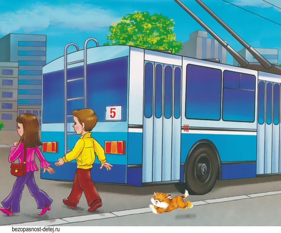 2.1 Дети неправильно переходят дорогу, т.к по новым изменениям ПДД надо подождать когда маршрутный общественный транспорт уедет, и только потом переходить дорогу(если нет светофора, а на картинке его нет)
