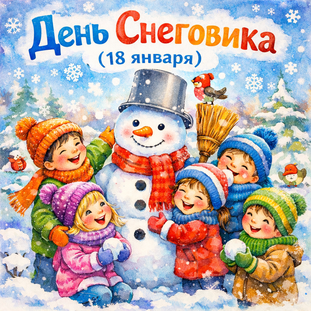 — Ребята, посмотрите, что сегодня за день? Снежинки кружатся, сугробы растут, мороз щиплет носики! А знаете ли вы, что сегодня особенный день — 18 января — Международный день Снеговика! Это праздник самого весёлого зимнего героя, которого любят все дети.