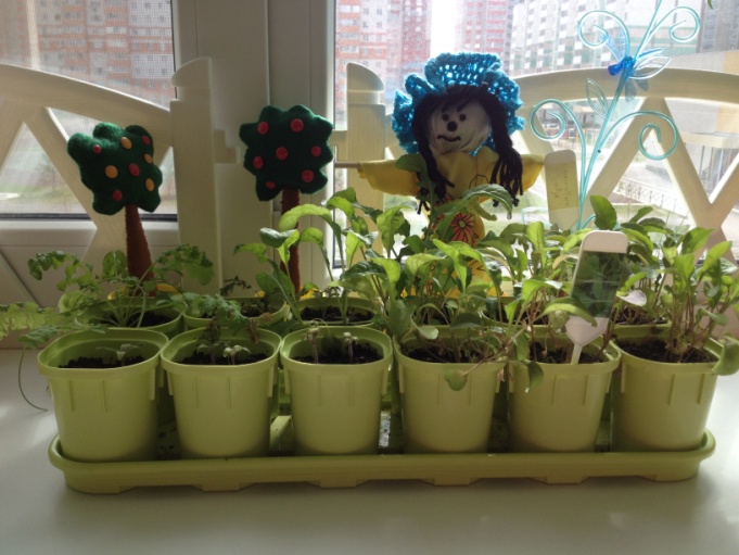 В группе детского сада на подоконнике обустроили огород. Приобретение необходимого оборудования: контейнеры для рассады, пластиковые стаканчики, земля, семена, луковицы. Изготовили таблички - указатели с картинками растений, которые будем выращивать. Подобрали художественную литературу для чтения: поговорки, загадки, стихи, сказки.