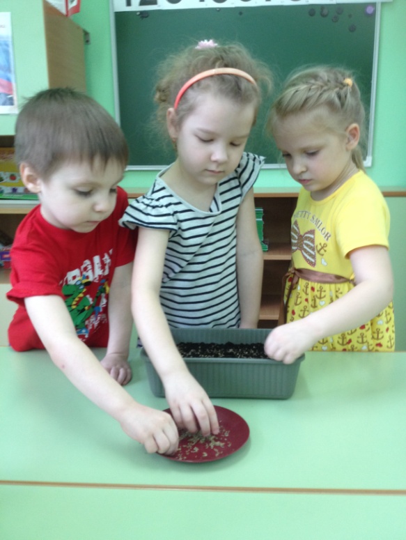 Дети участвовали в подготовке семян растений к высадке; сеяли семена зелени – укропа и петрушки, цветов, сажали лук.