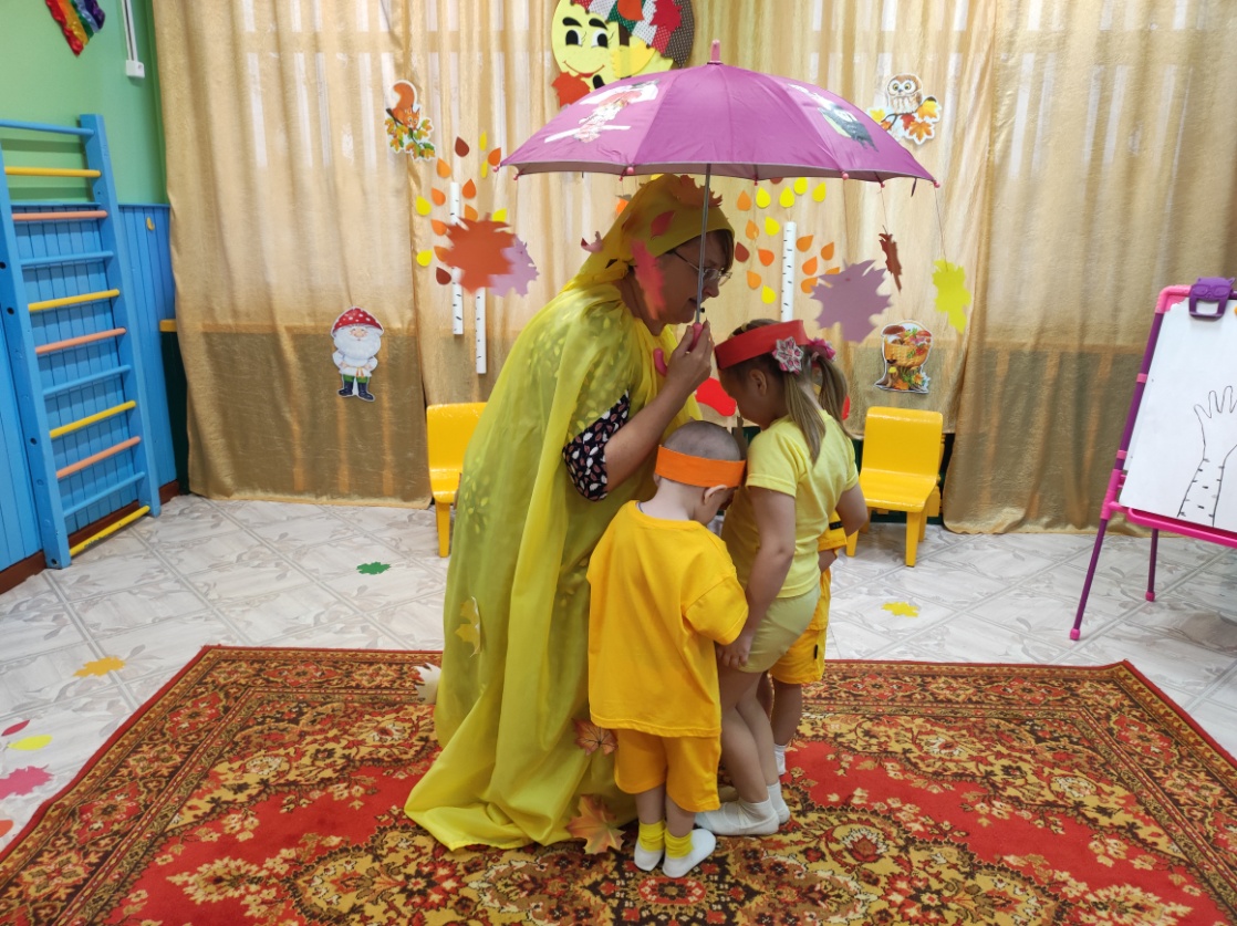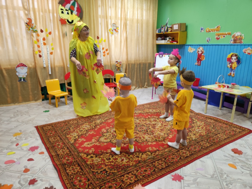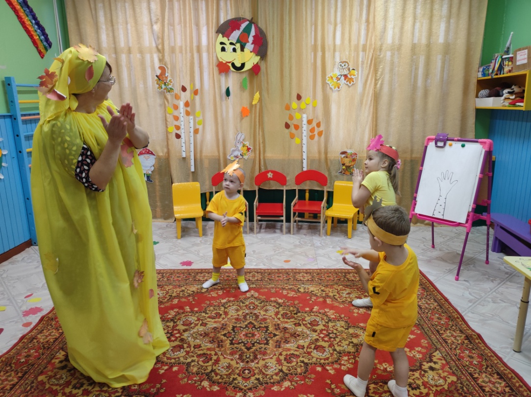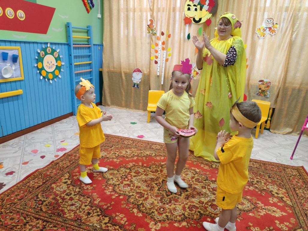 Цель: Обобщить и систематизировать знания детей об осени, формировать у детей эмоционально-радостные ощущения от активного участия в совместной музыкально-игровой деятельности.