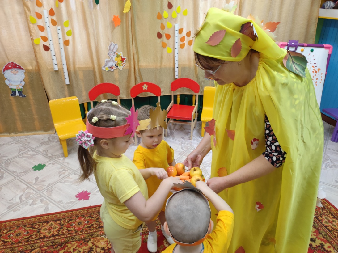 Осень: Ребята, а давайте мы с вами соберем осенний урожай.