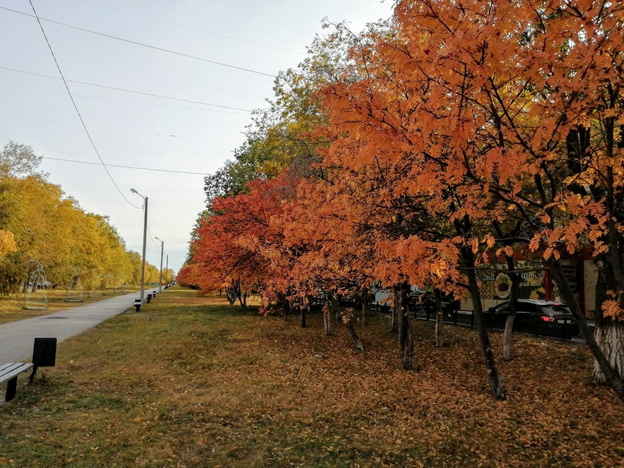 Листья на деревьях становятся жёлтыми и красными и опадают – это листопад.