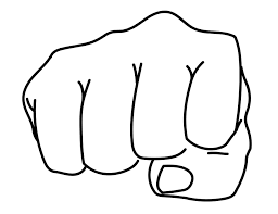 На столе столбик из листочков, на которых изображены кулак или ладонь.