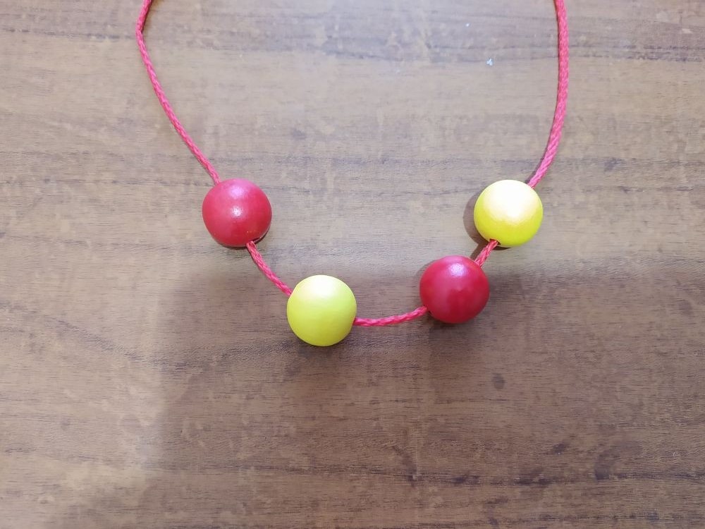 Материал: бусины 2-х цветов (например, красного и желтого) одинаковой величины и формы; шнурок.