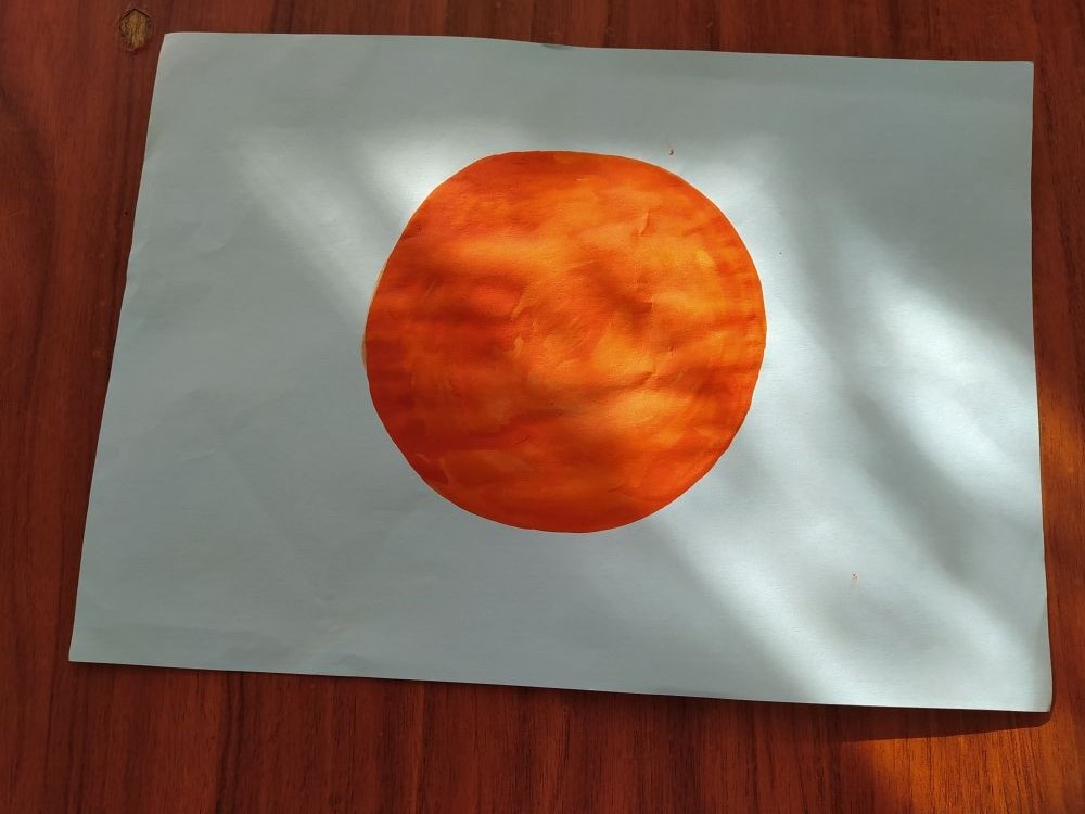 Цель: подводить ребенка к самостоятельному выбору цвета для передачи особенностей хорошо знакомого предмета. Учить выбирать краску нужного цвета из трех близких цветов ( красный, оранжевый, желтый): рисовать круг одним быстрым движением слева направо, закрашивая его внутри преимущественно круговыми движениями.