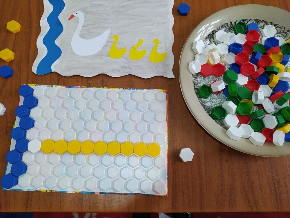 Выкладывание из мозаики на тему «Гуси с гусятами»