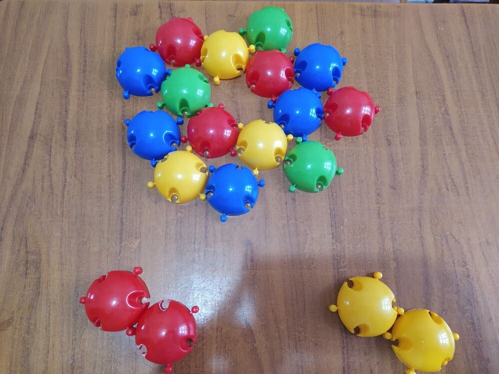 Цель: учить выбирать предметы двух заданных цветов из 4-х возможных; закреплять умение группировать предметы по цвету.