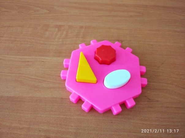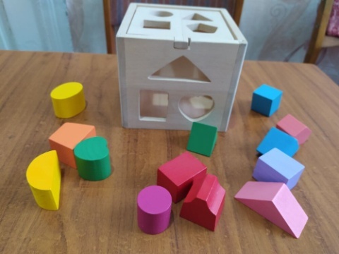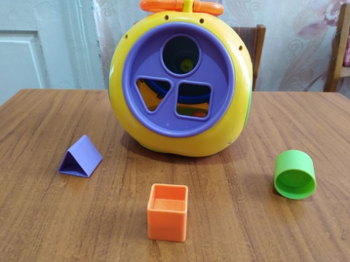 Материал: игрушка-сортер с отверстиями разной формы и объемные формы
