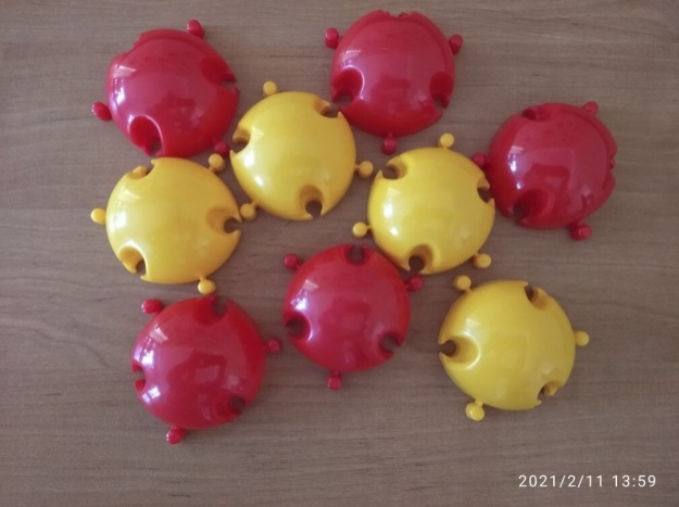 Взрослый показывает 5 кругов и 5 овалов, перемешанных произвольно. Поочередно показывая ребенку один круг и один овал, он поясняет, что игрушки разные. При показе круга внимание ребенка фиксируется на его форме. Обводя круг рукой, взрослый поясняет: «Посмотри, какой кружок у меня, вот такой». Показывая овал, педагог тоже обводит его рукой и поясняет, что эта игрушка другая, она как огурчик (использует опредмеченное слово). Далее взрослый говорит, что надо одни игрушки (кружки) разместить в одном месте, а другие (овалы) – в другом. Показывает, как это делается. Для установления тождества или различия можно использовать прием накладывания предметов друг на друга.