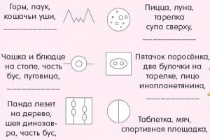 Попробуем ограничить тему ответов, например, вопросом, а что это за зверь (мебель, еда, и т. д?). Сузив область поисков, мы поможем ребёнку сосредоточиться. И ему будет проще увидеть в каракулях, например, разных зверей. При затруднении ребёнка предлагаем свои версии. Объясняем, почему вы решили, что картинка похожа на данный предмет. Если ребенок настаивает на одном только ответе, переворачиваем картинку вверх ногами и фантазии ребенка продолжаются.