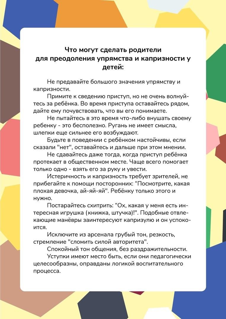 Консультация будет полезна родителям в преодолении упрямства и капризности у детей.