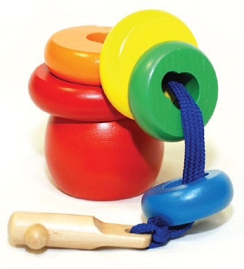 Пирамидками играют все малыши. С заслуживающей уважения серьёзностью они нанизывают кольца на штырь, чтобы тут же их снять и начать процесс заново. Пирамидку без преувеличения можно назвать комплексным тренажером, позволяющим разрабатывать ту самую мелкую моторику, которая стимулирует работу головного мозга. Это не только механическое ощупывание (которое, кстати, тоже очень важно), но и знакомство с формой, объёмом, пространством, количеством и цветом. Какая ещё игрушка может этим похвастаться?
