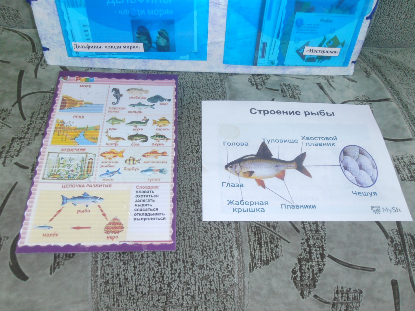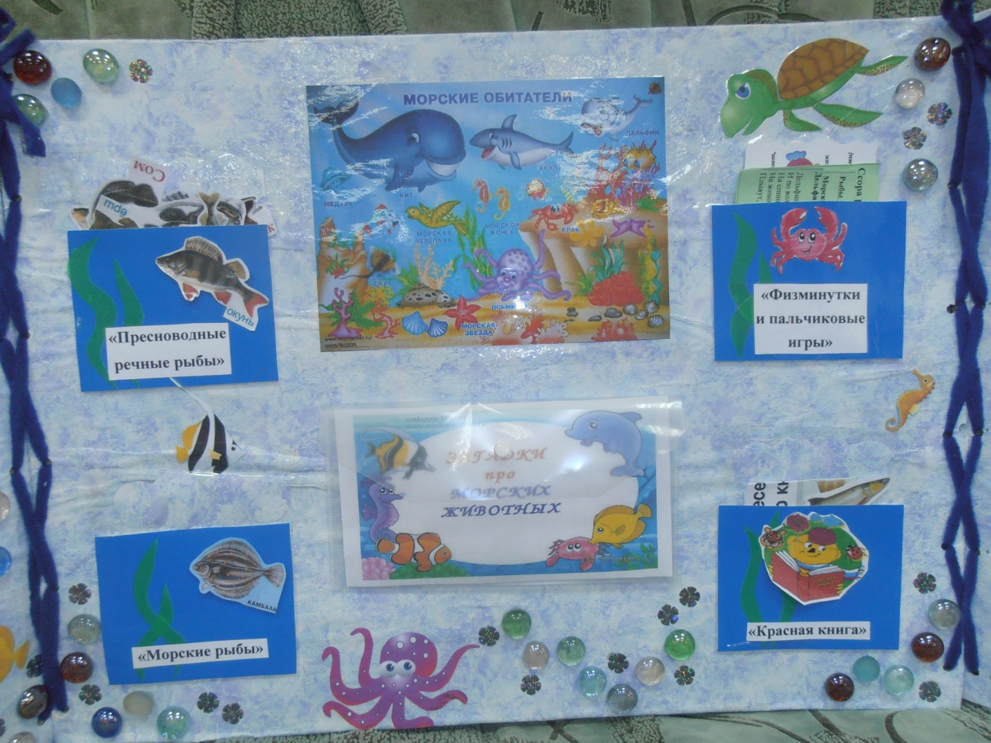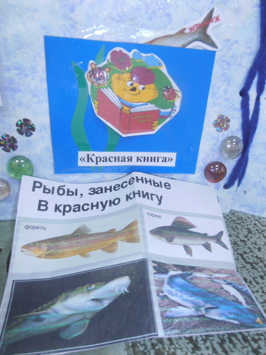 Формировать представление детей о рыбах (их строении и место обитания);о морских обитателях, в том числе -занесенных в красную книгу.