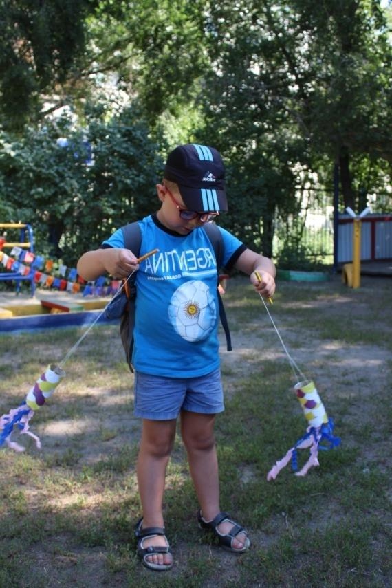 Вот и готовы наши летающие рыбки ! Теперь мы отправляемся на прогулку, чтобы увидеть, как они летают. А ещё мы с ребятами украшаем такими ветрячками песочницу и веранду на участке (и красиво, и ребятам приятно, что они принимают участие в оформлении участка).