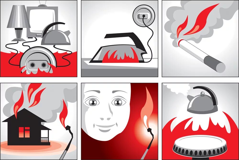 Уходя из дома, следует выключать бытовую технику, не оставлять без присмотра включенные электроприборы, работающие в режиме ожидания. Даже поставленный на зарядку аккумулятора мобильный телефон и ноутбук могут стать причиной возгорания.