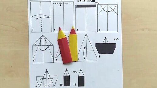 Перевернуть заготовку. Сложить - "закроем книжечку" – слева направо загнем одну сторону, другую - справа налево. (Ориентиром по ширине для действий служит белая «заточенная» часть карандаша).