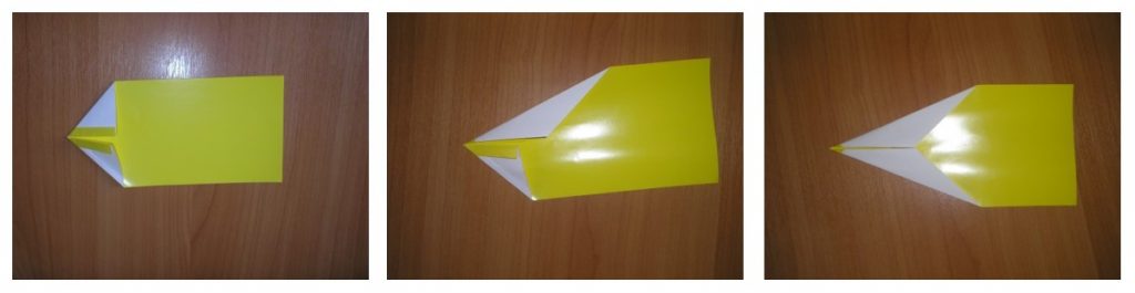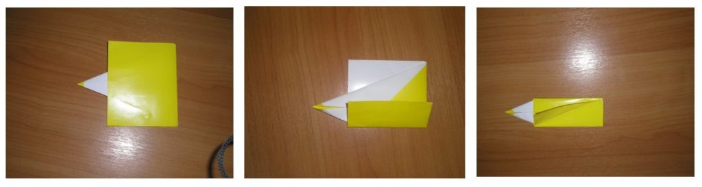 заготовку надо складывать на столе, совмещая углы и стороны. Место сгиба проглаживать пальчиком, как утюжком. Очень аккуратно, потому что бумага легко рвётся.
