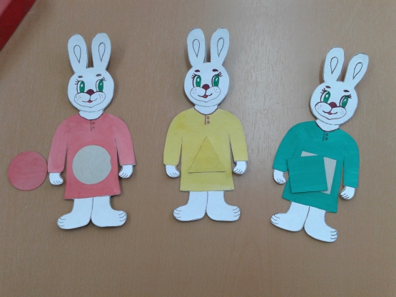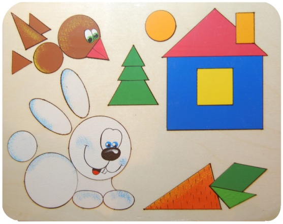 На столе раскладывают геометрические фигуры, одинаковые с теми, которые лежат в мешочке. Педагог показывает любую фигуру и просит ребенка достать из мешочка такую же.