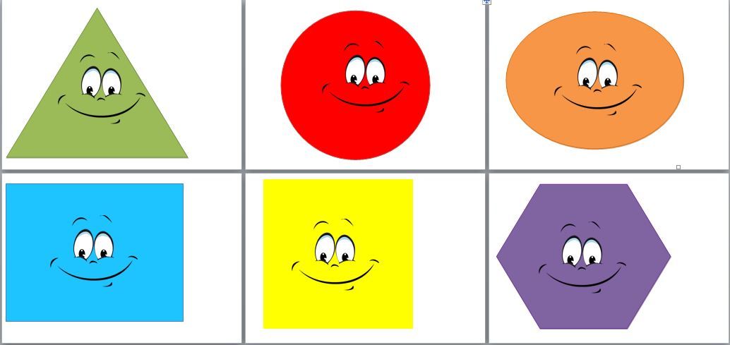 • форма (эталоны формы) – круг, квадрат, треугольник, овал, прямоугольник;