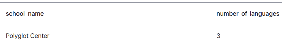 COUNT(sl.language_id) вычисляет общее количество языков для каждой школы.