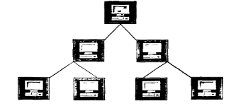 Древовидная топология (иерархическая, вертикальная). В этой топологии узлы выполняют другие более интеллектуальные функции, чем в топологии «звезда».
