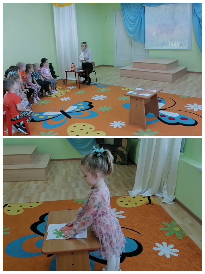 Воспитатель: Молодцы ребята, давайте для зайчика собирем морковку.