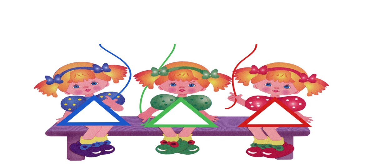 - Маша заплела две косички и ей нужно два одинаковых бантика. Какого цвета одинаковые бантики? Синего цвета. Покажите бантик красного цвета (желтого, зеленого).