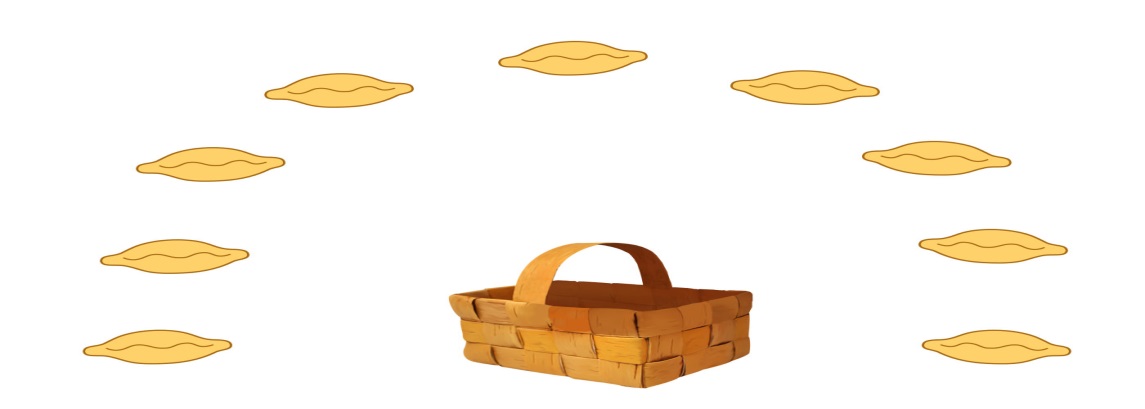 - Помогите сложить пирожки в короб - проведите карандашом линию от каждого пирожка в короб.