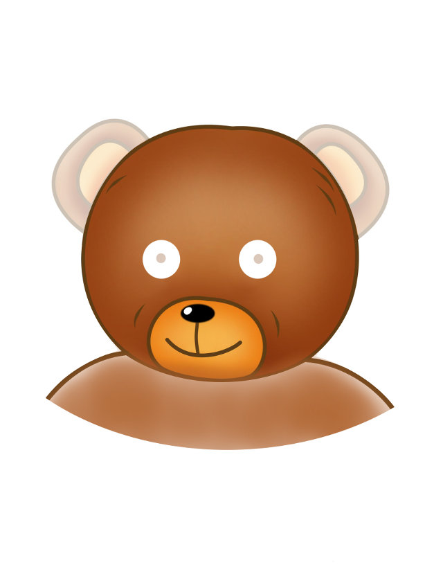 Дети из черного пластилина лепят носик и придавливают в нужном месте изображения, кусочек коричневого пластилина делят пополам, скатывают шарики, сплющивают и приделывают к изображению ушки.